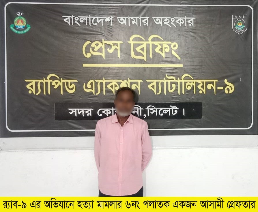 র্যাব-৯ এর অভিযানে সিলেটে চাঞ্চল্যকর আলিমা বেগম হত্যা মামলার আসামি গ্রেফতার।