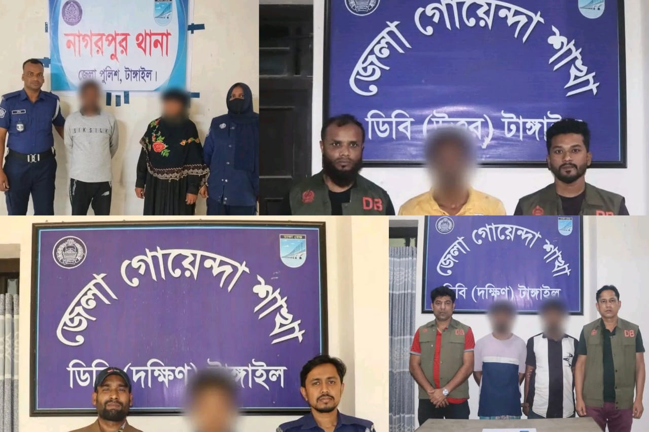 টাঙ্গাইলে পুলিশের অভিযানে মাদক উদ্ধারসহ ২৬ জন গ্রেপ্তার