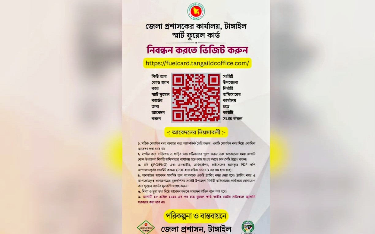 - চলমান সংকট রোধে সারা দেশের ন্যায় টাঙ্গাইল সদরেও চালু হচ্ছে স্মার্ট ফুয়েল কার্ড