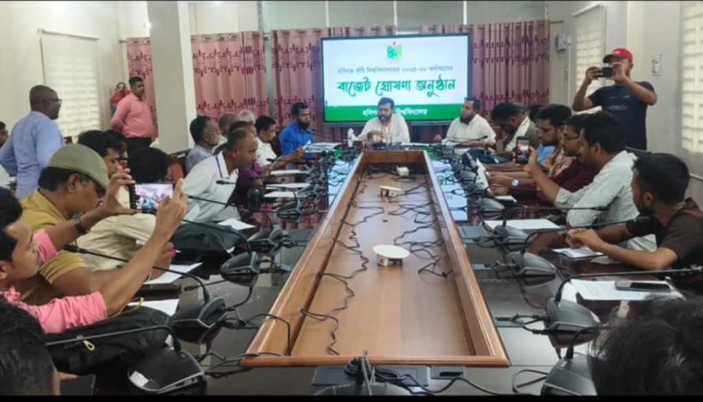 হবিগঞ্জ কৃষি বিশ্ববিদ্যালয় (HAU) ২০২৫-২৬ অর্থবছরের জন্য ১৬ কোটি ৩৪ লাখ টাকার বাজেট ঘোষণা করেছে। আজ দুপুরে বিশ্ববিদ্যালয়ের সম্মেলন কক্ষে এক সংবাদ সম্মেলনে উপাচার্য অধ্যাপক ড. সৈয়দ সায়েম উদ্দিন আহম্মদ এই বাজেট পেশ করেন।