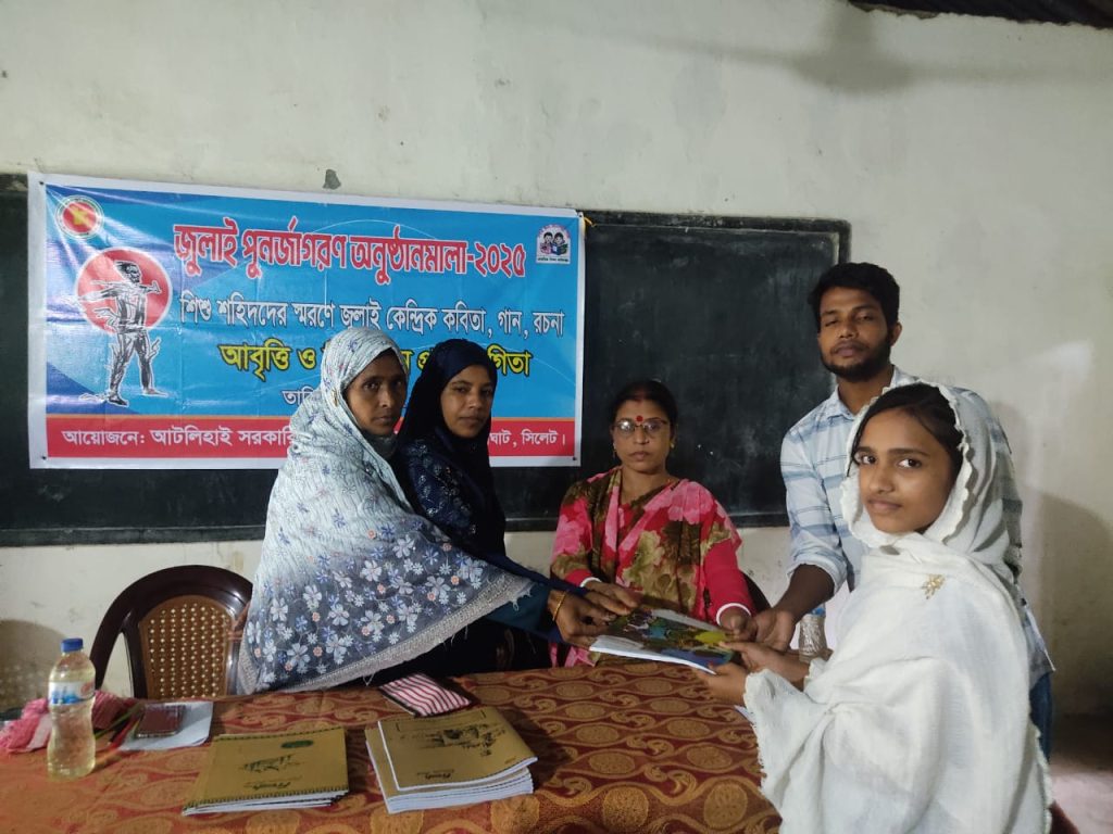 সিলেটের গোয়াইনঘাটে ৫নং পূর্ব আলীরগাঁও ইউনিয়নে অবস্থিত আটলিহাই সরকারি প্রাথমিক বিদ্যালয়ে গত বৃহস্পতিবার (৩১ জুলাই, ২০২৫) দিনব্যাপী ‘জুলাই পুনর্জাগরণ অনুষ্ঠানমালা-২০২৫’ উদযাপিত হয়েছে। সকাল ১১টা থেকে বিকাল ৪টা পর্যন্ত চলা এই অনুষ্ঠানে শিশু শহীদদের স্মরণে বিভিন্ন প্রতিযোগিতার আয়োজন করা হয়।