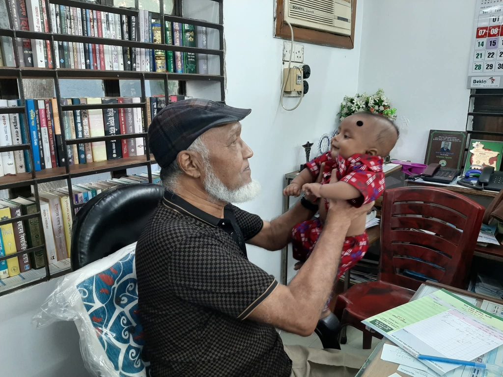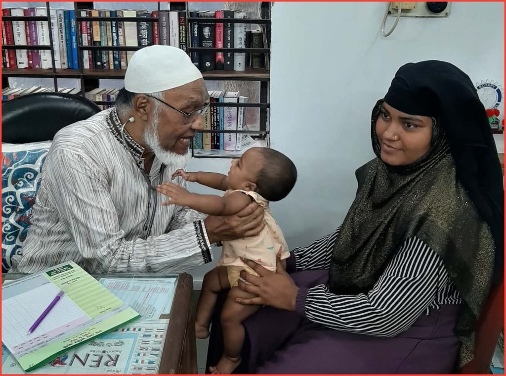 চেম্বারে একটি শিশুর সাথে খেলা করছেন ডা. জমির আলী।