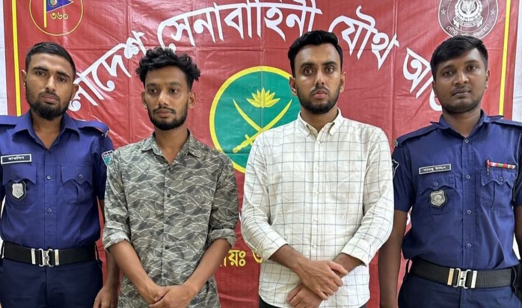 বৃহস্পতিবার (১৪ আগষ্ট) রাতে উপজেলার বাঘাসুরা ইউনিয়নের কালিকাপুর এলাকায় অভিযান চালিয়ে উপজেলা ছাত্রদলের সদস্য সচিব জামিল চৌধুরী ও মোনায়েম খানকে আটক করে যৌথবাহিনী।