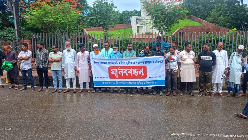এই সিদ্ধান্তের প্রতিবাদে গতকাল সিলেট কেন্দ্রীয় শহীদ মিনারে ‘সিলেটবাসী’র ব্যানারে একটি বিশাল মানববন্ধন অনুষ্ঠিত হয়। এতে সভাপতিত্ব করেন মদন মোহন কলেজের সাবেক প্রিন্সিপাল পীর হাবিবুর রহমান। মানববন্ধনে উপস্থিত ছিলেন বিএনপি সিলেট মহানগরের ভারপ্রাপ্ত সভাপতি রেজাউল হাসান কয়েস লোদী এবং বিশেষ অতিথি হিসেবে উপস্থিত ছিলেন এমদাদ হোসেন চৌধুরী।
