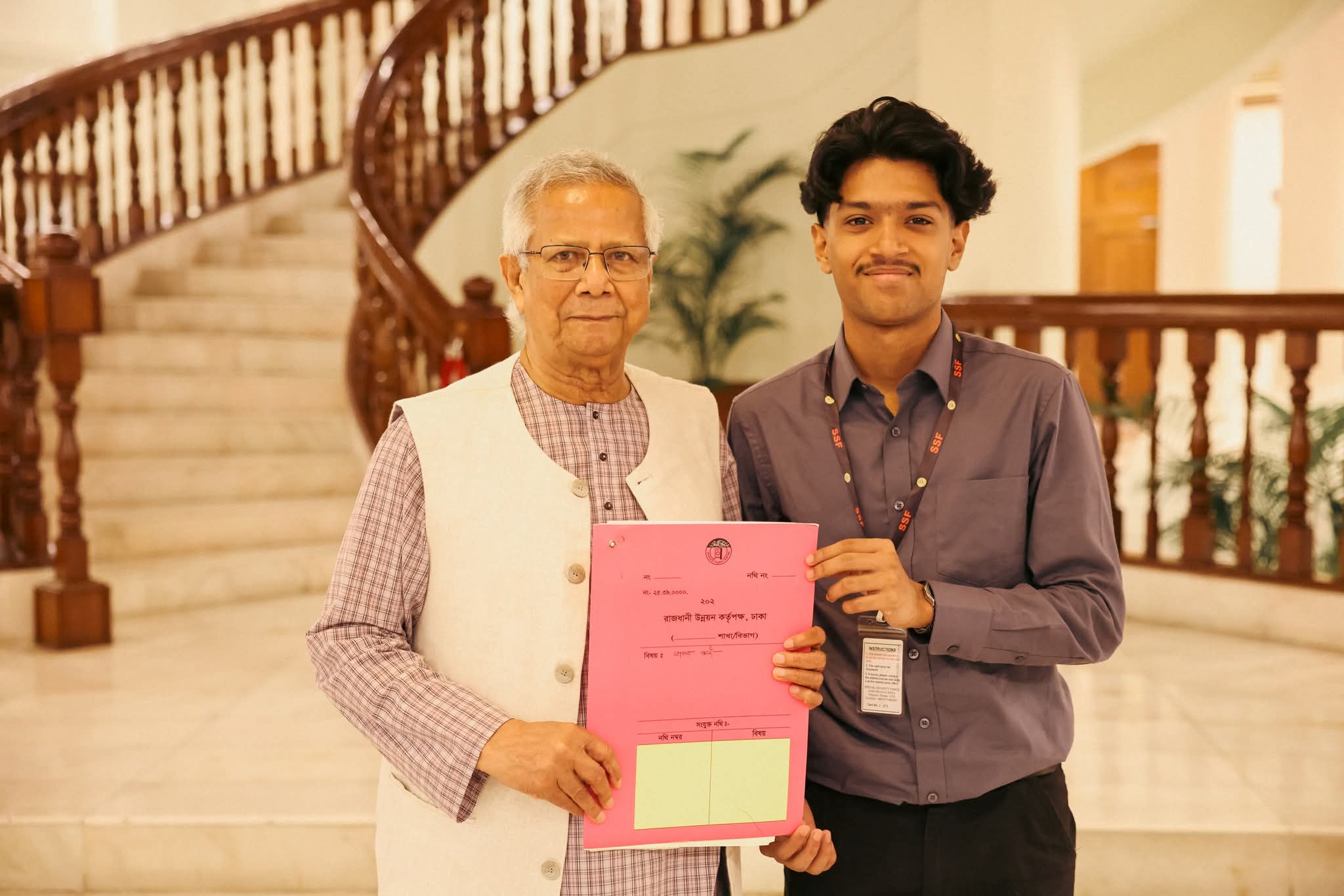 আজ বৃহস্পতিবার বিকেলে রাষ্ট্রীয় অতিথি ভবন যমুনায় মাহির সরওয়ার মেঘের হাতে এই দলিল হস্তান্তর করেন প্রধান উপদেষ্টা।