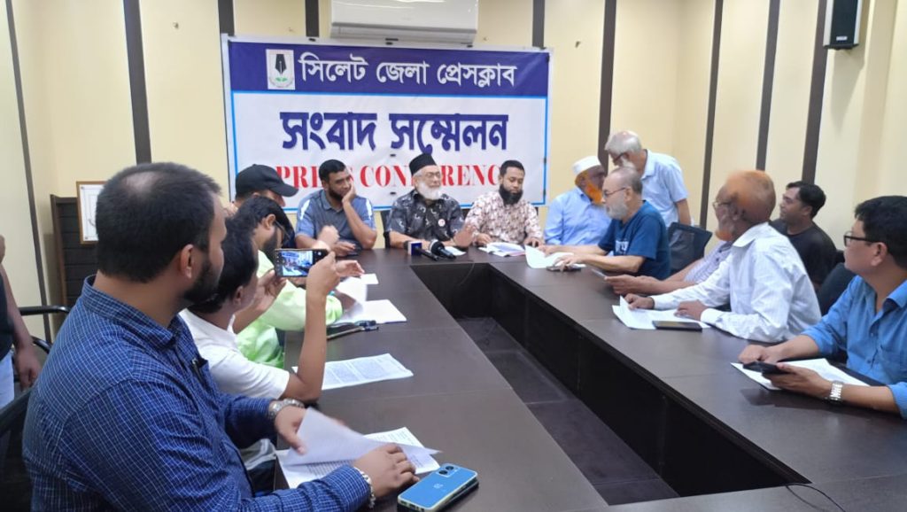 সিলেট জেলা প্রেসক্লাবে পৃথকভাবে সংবাদ সম্মেলন অনুষ্ঠিত হয়। বক্তব্য রাখছেন অধ্যক্ষ পীর আতাউর রহমান