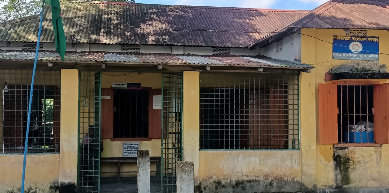 বামৈ ভূমি অফিস, দরজা খোলা থাকলেও নেই কর্মকর্তা ও কর্মচারীদের উপস্থিতি।