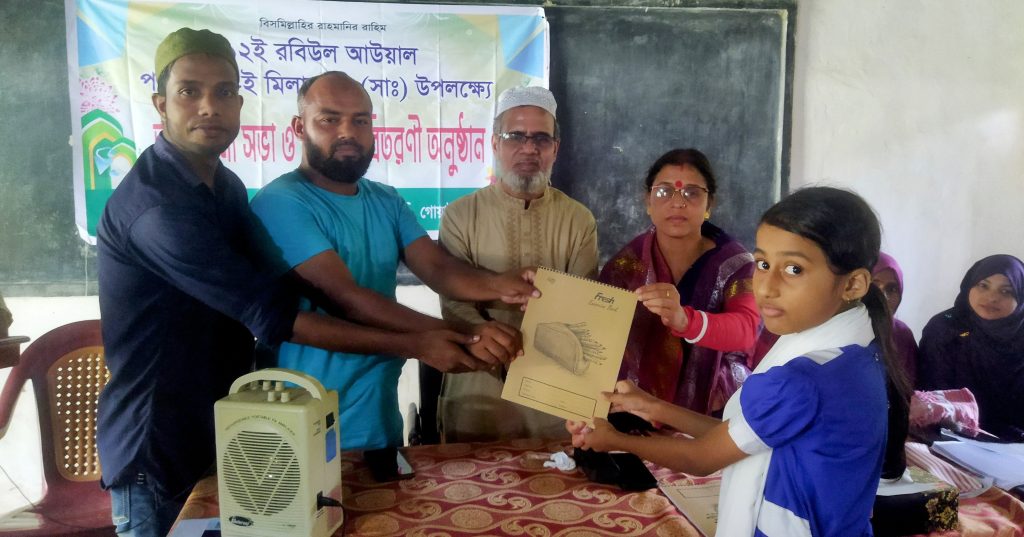 শিক্ষার্থীদের মধ্যে পুরষ্কার বিতরণ করছেন অত্র বিদ্যালয়ের সাবেক প্রধান শিক্ষক ও ভারপ্রাপ্ত প্রধান শিক্ষক।