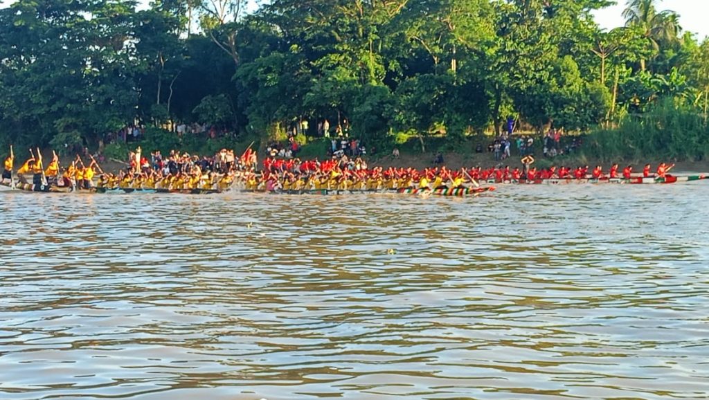 অতিথিরা নৌকায় চড়ে এই মনোমুগ্ধকর প্রতিযোগিতা উপভোগ করেন।