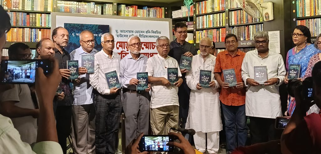গীতিকারকে ফুল দিয়ে অভিনন্দিত করার পর সদ্য প্রকাশিত বইয়ের মোড়ক উন্মোচন করা হয়।