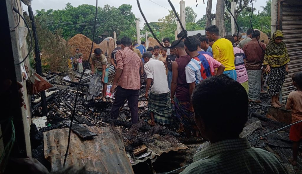 আগুনে ভস্মীভূত হওয়া দোকানগুলোর মধ্যে রয়েছে রাম জয়ের ওষুধের ফার্মেসী, সাংবাদিক আশীষ দাশগুপ্তের হোমিওপ্যাথিক ফার্মেসী, সামাদ্য পালের চায়ের দোকান, আব্দুল মালেক মিয়ার ফলের দোকান, সুসেন দেবনাথের স্বর্ণকারের দোকান, রঞ্জিত শীলের একটি সেলুন ও সুতার দোকান, কর্ণ দেবনাথের পানের দোকান, উপা নন্দের ওষুধের ফার্মেসী এবং সন্তোষ রায়ের একটি দোকান। এছাড়া, পল্লী বিদ্যুতের ১০টির বেশি মিটারও পুড়ে গেছে।