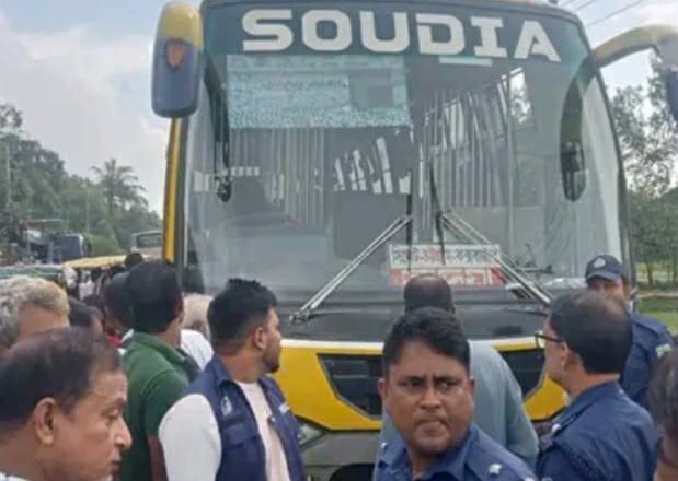 ঘাতক বাস টি কে পুলিশ ও জনতা আটক করে।