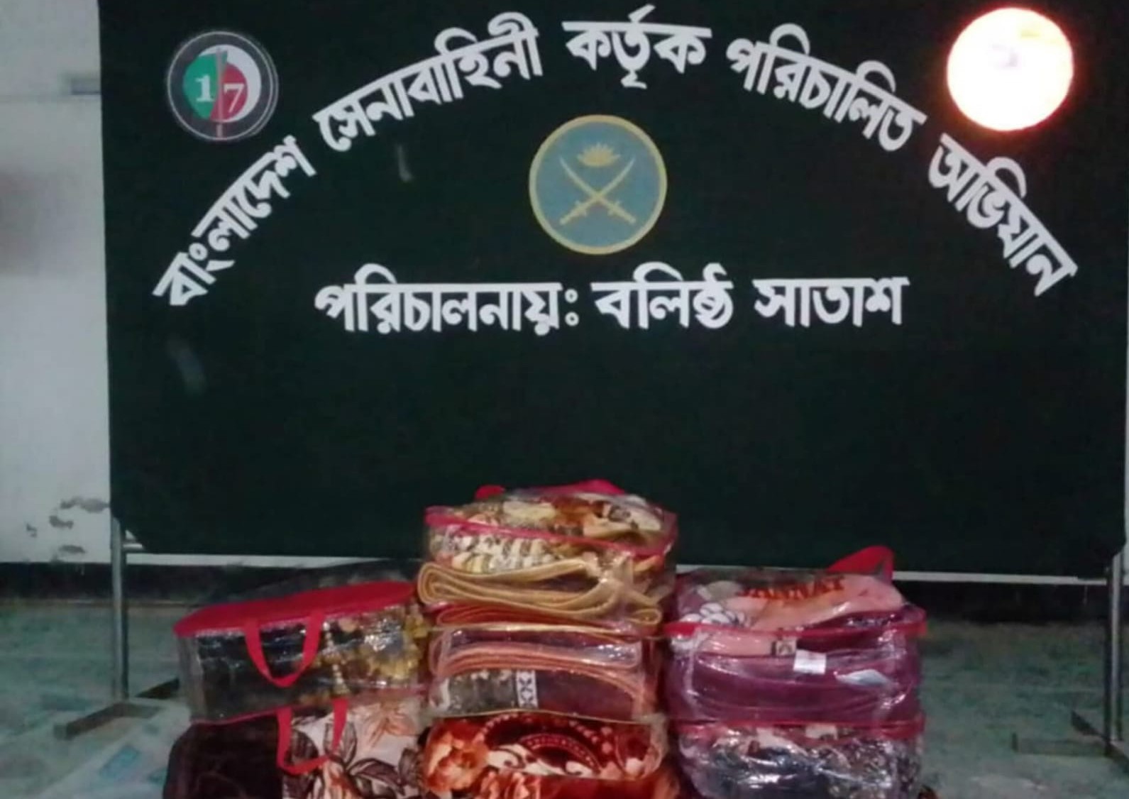 একই দিনে, হরিপুর উমনপুর এলাকায় সেনাবাহিনীর গোয়েন্দারা আরেকটি অভিযানে দশটি ভারতীয় কম্বল জব্দ করা হয়।