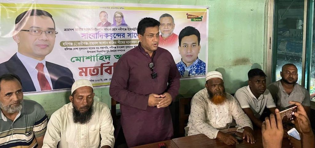মতবিনিময় সভায় মোশাহিদ আলম মুরাদ হবিগঞ্জ -১ আসনে নিজের প্রার্থীতা ঘোষণা করে দলের মনোনয়ন প্রত্যাশার বিষয় টি তোলে ধরেন।