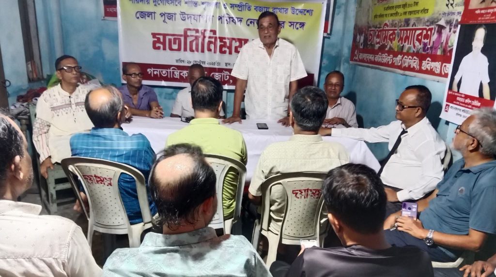 ‎আসন্ন শারদীয় দুর্গোৎসবে শান্তি-শৃঙ্খলা ও সম্প্রীতি বজায় রাখার মহৎ উদ্দেশ্যে হবিগঞ্জ জেলা বাম জোটের উদ্যোগে এক মতবিনিময় সভা অনুষ্ঠিত হয়েছে।
