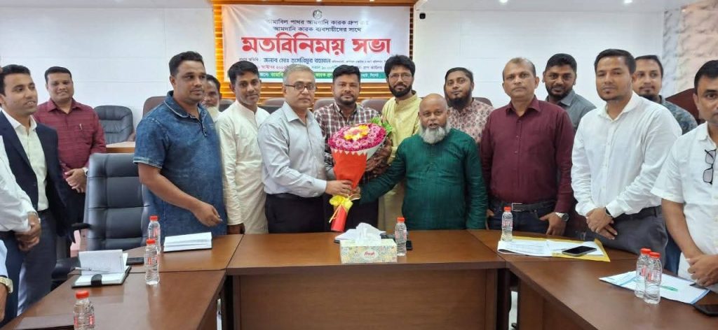 এ সময় কমিশনার মোঃ তাসনিমুর রহমান ব্যবসায়ীদের আশ্বস্ত করেন যে আমদানি-রপ্তানি বাণিজ্যকে আরও গতিশীল করতে তিনি প্রয়োজনীয় ব্যবস্থা গ্রহণ করবেন।
