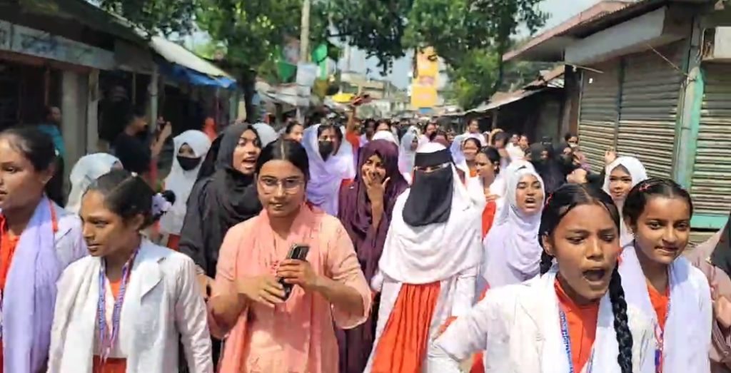 অভিযুক্ত শিক্ষকের বিচার ও অপসারণের দাবিতে আজ ১২ অক্টোবর দুপুরে স্কুল প্রাঙ্গণ ও সংলগ্ন এলাকায় বিক্ষোভ মিছিল বের করা হয়। মিছিলে অংশ নিয়ে ছাত্র-ছাত্রী ও স্থানীয়রা অভিযুক্ত শিক্ষক আশফাকুর রহমানের নাম ধরে স্লোগান দেন এবং তাঁর দৃষ্টান্তমূলক শাস্তি দাবি করেন।