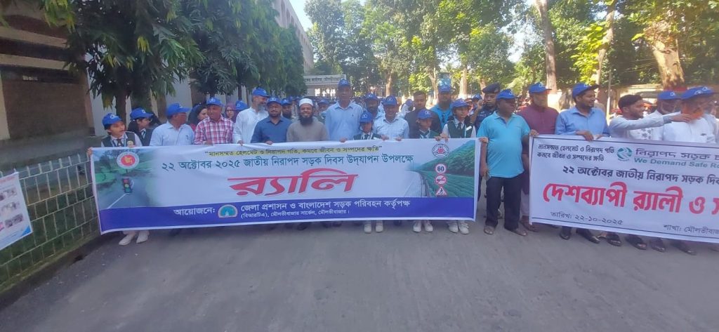 মানসম্মত হেলমেট ও নিরাপদ গতি, কমবে জীবন ও সম্পদের ক্ষতি—এই প্রতিপাদ্য নিয়ে মৌলভীবাজারে জাতীয় নিরাপদ সড়ক দিবস-২০২৫ পালন করা হয়েছে।