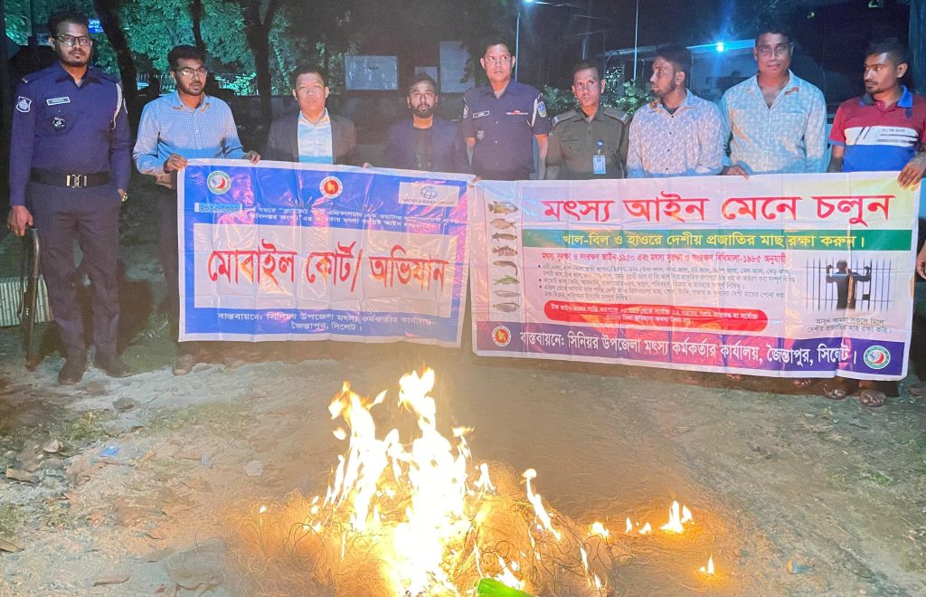 অভিযানে উপজেলা ভূমি অফিস, সিনিয়র মৎস্য কর্মকর্তা কার্যালয়ের কর্মকর্তা এবং জৈন্তাপুর মডেল থানা পুলিশের একটি টিম অংশ নেয়।