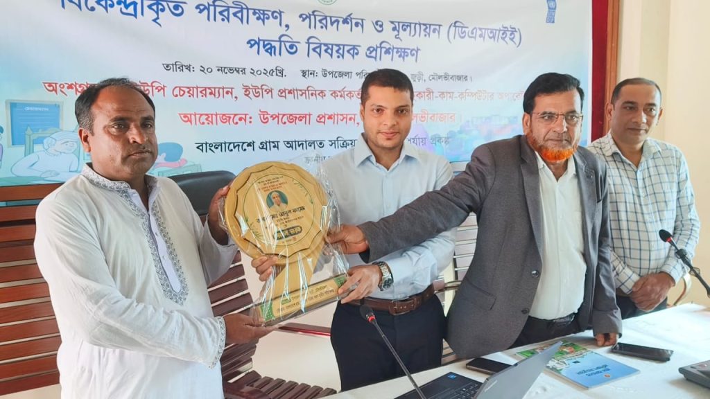 ‎বৃহস্পতিবার (২০ নভেম্বর) জুড়ী উপজেলা প্রশাসনের আয়োজনে ও বাংলাদেশ গ্রাম আদালত সক্রিয়করণ-তৃতীয় পর্যায় প্রকল্পের সার্বিক ব্যবস্থাপনায় উপজেলা সভাকক্ষে বিকেন্দ্রীকৃত পরিবীক্ষন, পরিদর্শন ও মূল্যায়ন পদ্ধতি বিষয়ক প্রশিক্ষণ কর্মশালার উদ্বোধনী অনুষ্ঠান শেষে ইউপি সদস্য আবুল কাশেমকে এই সম্মাননা প্রদান করা হয়।