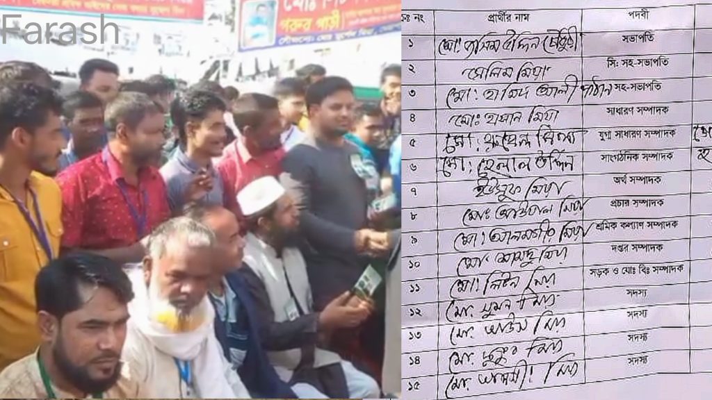 নবনির্বাচিত যারা হয়েছেন, সভাপতি পদে নির্বাচিত হয়েছেন মোহাম্মদ জসিম উদ্দিন চৌধুরী (ছাতা মার্কা)। সিনিয়র সহ–সভাপতি পদে নির্বাচিত সেলিম মিয়া (চশমা মার্কা)। সহ–সভাপতি হয়েছেন মোহাম্মদ হামিদ আলী পাঠান (হাতি মার্কা)। সাধারণ সম্পাদক হয়েছেন হাসান আলী (মই মার্কা)। যুগ্ম সাধারণ সম্পাদক পদে নির্বাচিত মোহাম্মদ রুবেল মিয়া (গোলাম ফুল মার্কা)। সাংগঠনিক সম্পাদক হয়েছেন মোহাম্মদ হেলাল উদ্দিন (হাতঘড়ি মার্কা), অর্থ সম্পাদক নির্বাচিত ইউসুফ মিয়া (মাটির ব্যাংক মার্কা), শ্রমিক কল্যাণ সম্পাদক হয়েছেন মোহাম্মদ আলমগীর মিয়া (টিউবওয়েল মার্কা), দপ্তর সম্পাদক হয়েছেন মোহাম্মদ সামছু মিয়া (দোয়াতকলম মার্কা)। সড়ক ও যানবাহন বিষয়ক সম্পাদক হয়েছেন মোহাম্মদ লিটন মিয়া (গরুর গাড়ি মার্কা),সদস্য নির্বাচিত হয়েছেন মোহাম্মদ সুমন মিয়া (ফুটবল মার্কা), মোহাম্মদ আউস মিয়া (কলসী মার্কা), মোহাম্মদ কুতুর মিয়া (মোরগ মার্কা) এবং মোহাম্মদ আলমগীর মিয়া (গরু মার্কা)।