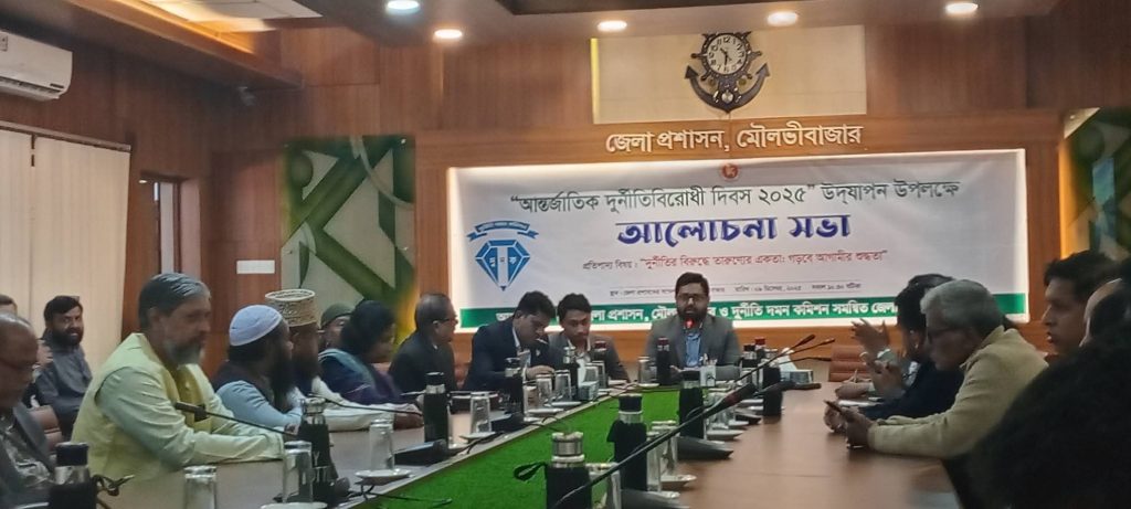 ”দুর্নীতির বিরুদ্ধে তারুণ্যের ঐক্য: গড়বে আগামীর শুদ্ধতা’)” প্রতিপাদ্যকে সামনে রেখে মৌলভীবাজারে আন্তর্জাতিক দুর্নীতিবিরোধী দিবস-২০২৫ পালিত হয়েছে।
