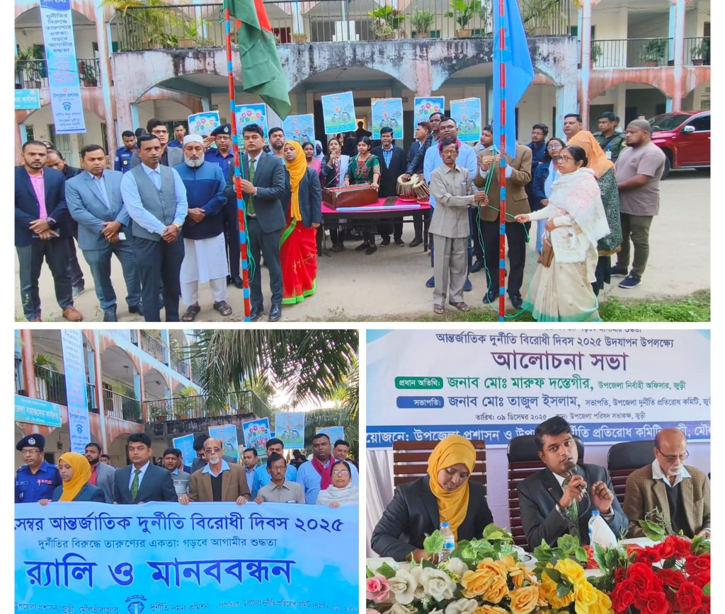 ’দুর্নীতির বিরুদ্ধে তারুণ্যের একতা, গড়বে আগামীর শুদ্ধতা’ এই স্লোগানকে সামনে রেখে মৌলভীবাজারের জুড়ীতে উদযাপিত হয়েছে আন্তর্জাতিক দুর্নীতি বিরোধী দিবস ২০২৫। দিবসটি উপলক্ষে মঙ্গলবার (০৯ ডিসেম্বর) সকালে উপজেলা পরিষদ প্রাঙ্গণে জাতীয় পতাকা ও দুদক পতাকা উত্তোলন করা হয়। পরে র্যালি ও মানববন্ধন শেষে উপজেলা পরিষদ সভাকক্ষে আলোচনা সভা অনুষ্ঠিত হয়।
