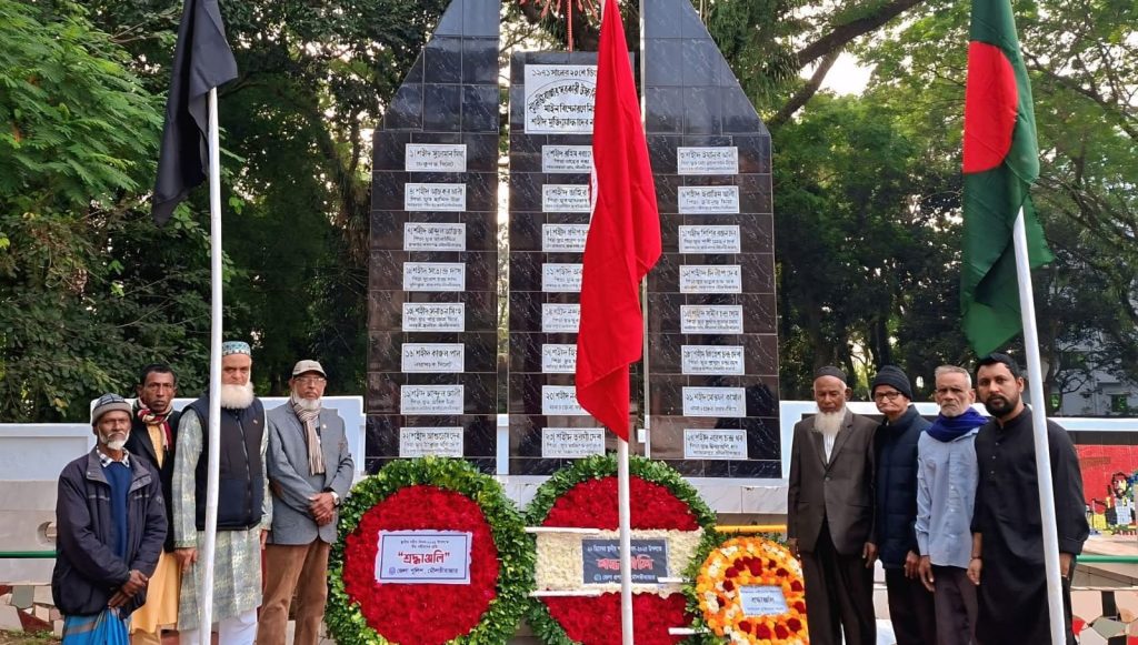 শহীদবেদিতে ফুল দিয়ে শ্রদ্ধা জানান মুক্তিযোদ্ধাগণ