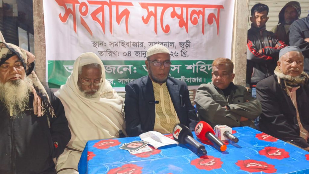 ‎মৌলভীবাজার জেলার জুড়ীতে মেয়ে হত্যার বিচার চেয়ে সংবাদ সম্মেলন করেছেন এক ভোক্তভোগী বাবা। রবিবার (৪ জানুয়ারি) সন্ধ্যায় উপজেলার সাগরনাল ইউনিয়নের সমাই বাজারে সংবাদ সম্মেলন করেন জাঙ্গালিয়া গ্রামের আব্দুস শহীদ নামের ওই ভোক্তভোগী বাবা।