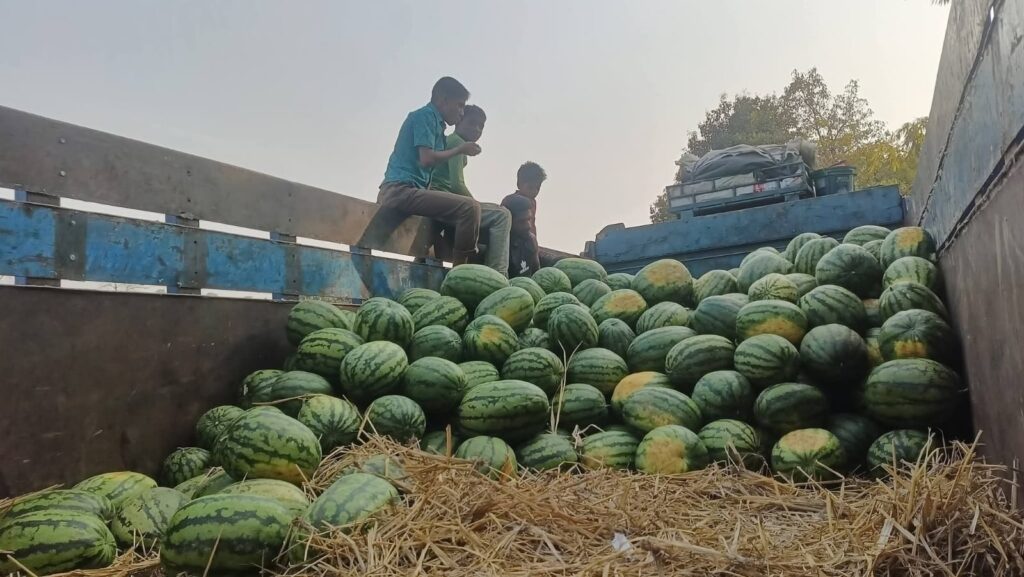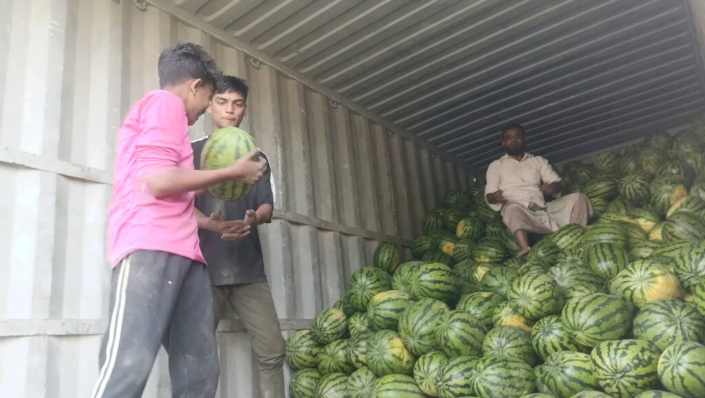ট্রাক তোলা হচ্ছে তরমুজ, রাজধানী সহ বিভিন্ন জায়গায় যাচ্ছে।