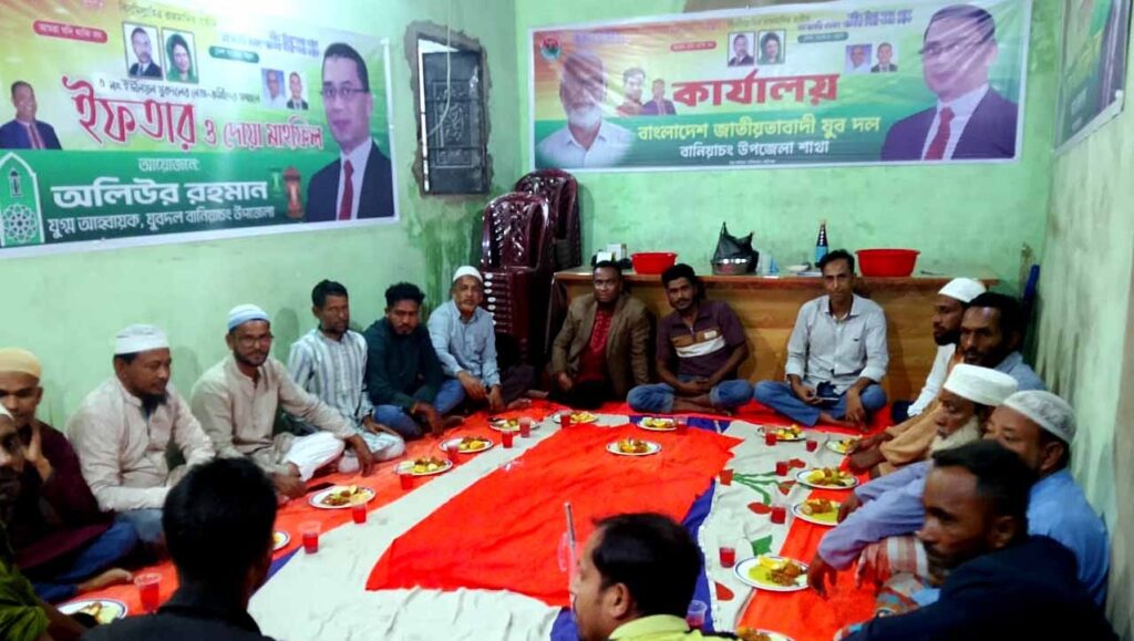 বাংলাদেশ জাতীয়তাবাদী যুবদল বানিয়াচং উপজেলা শাখার যুগ্ম আহবায়ক অলিউর রহমান উপজেলার ১৫ টি ইউনিয়নের যুবদলের নেতাকর্মীদের সম্মানে ইফতার ও দোয়া মাহফিল আয়োজন অব্যাহত রেখেছেন। গত রোববার (২২ ফেব্রুয়ারি) ৪র্থ রমজানে ৩ নং দক্ষিণ পূর্ব ইউনিয়ন যুবদলের নেতাকর্মীদের সম্মানে বড়বাজারস্থ যুবদলের কার্যালয়ে ইফতারের আয়োজন করেন তিনি।