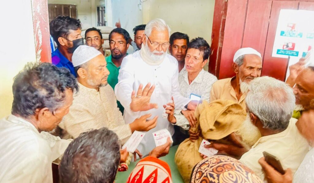 চাল বিতরণ অনুষ্ঠানে উপকারভোগীদের স্বতঃস্ফূর্ত উপস্থিতি লক্ষ্য করা যায়।