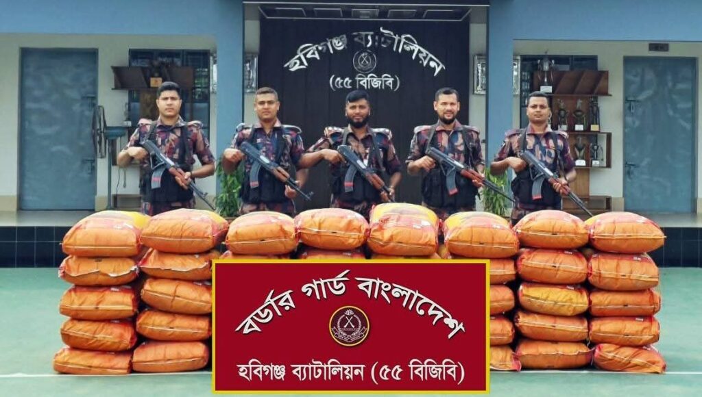 হবিগঞ্জ সীমান্তে বিজিবির অভিযানে ৬৬ লাখ টাকার ভারতীয় পণ্য ও গরু জব্দ