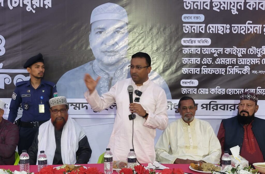 শুক্রবার (১৩ মার্চ) সিলেটের বিশ্বনাথে পৌর শহরের কারিকোনা গ্রামের ফুটবল মাঠে উপজেলা পরিষদের সাবেক চেয়ারম্যান ও জেলা বিএনপির সাবেক সহসভাপতি সদ্য প্রয়াত মোহাম্মদ সুহেল আহমদ চৌধুরীর রুহের মাগফেরাত কামনায় আয়োজিত ইফতার ও দোয়া মাহফিল অনুষ্ঠানে প্রধান অতিথির বক্তব্যে তিনি একথা গুলো বলেন।