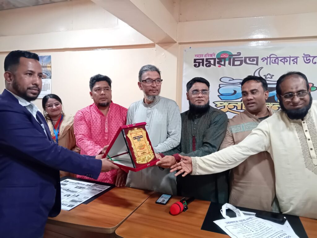 সভা শেষে সমাজসেবক ও শিক্ষানুরাগী সাইদুল ইসলাম-কে ‘সময়চিত্র’ পত্রিকার পক্ষ থেকে একটি সম্মাননা ক্রেস্ট প্রদান করা হয়।