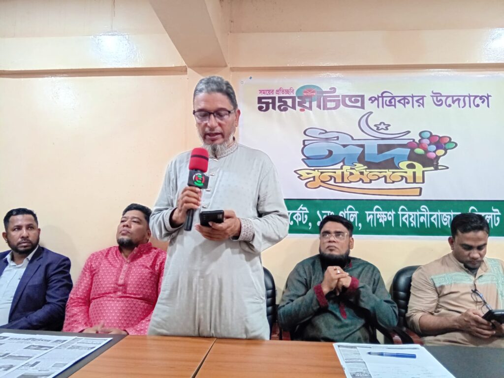 বিয়ানীবাজারে ‘সময়চিত্র’ পত্রিকার উদ্যোগে ব্যতিক্রমধর্মী ঈদ পুনর্মিলনী অনুষ্ঠান অনুষ্ঠিত হয়েছে। বুধবার (২৫ মার্চ) বিয়ানীবাজারে পত্রিকার নিজস্ব কার্যালয়ে আয়োজিত এ অনুষ্ঠানে সভাপতিত্ব করেন পত্রিকার সম্পাদক ও প্রকাশক ফয়জুল হক শিমুল।