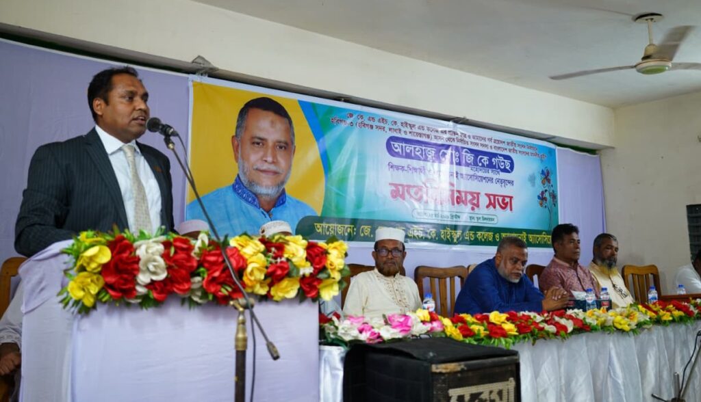 ‎গত ২৫ মার্চ বুধবার সকাল ১০ টায় হবিগঞ্জ শহরের যোগেন্দ্র কিশোর ও হরেন্দ্র কিশোর (জে কে এন্ড এইচ কে) হাইস্কুল এন্ড কলেজ কর্তৃপক্ষ, অ্যালামনাই অ্যাসোসিয়েশন ও শিক্ষক শিক্ষার্থীর সাথে মতবিনিময় সভায় তিনি একথাগুলো বলেন। স্কুল মিলনায়তনে এ মতবিনিময় সভা অনুষ্ঠিত হয়। এতে স্কুলের শিক্ষক, বর্তমান ও প্রাক্তন শিক্ষার্থী, অভিভাবকসহ স্থানীয় শায়েস্তানগর ও মোহনপুরের পঞ্চায়েতের সর্দারগণসহ এলাকার বিশিষ্ঠ ব্যক্তিরা অংশ নেন।
