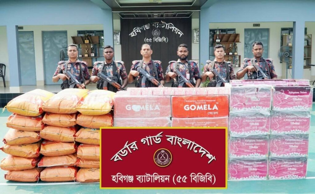 ‎সীমান্ত এলাকায় চোরাচালান প্রতিরোধ ও নিরাপত্তা জোরদারে পরিচালিত পৃথক অভিযানে হবিগঞ্জের মাধবপুর উপজেলায় প্রায় ৬৬ লাখ টাকা মূল্যের ভারতীয় পণ্য জব্দ করেছে বর্ডার গার্ড বাংলাদেশ (বিজিবি)।