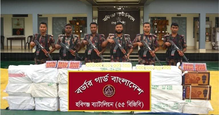 হবিগঞ্জে বিজিবির অভিযানে ২ কোটি ৪০ লাখ টাকার অবৈধ পণ্য জব্দ