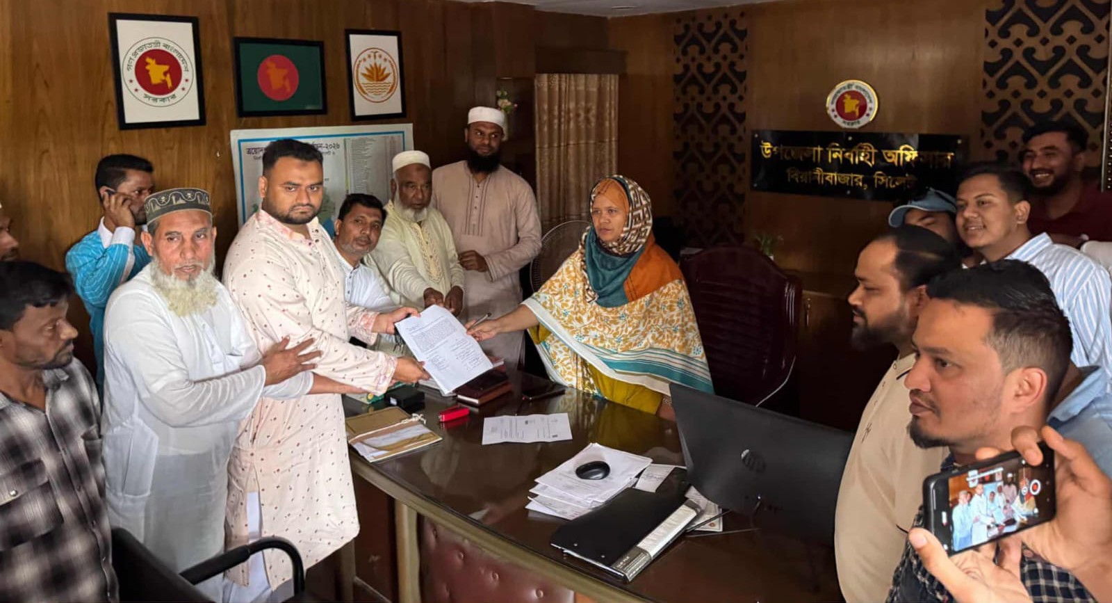 বিয়ানীবাজারে বাণিজ্য মেলা বন্ধের দাবীতে প্রতিবাদ সভা