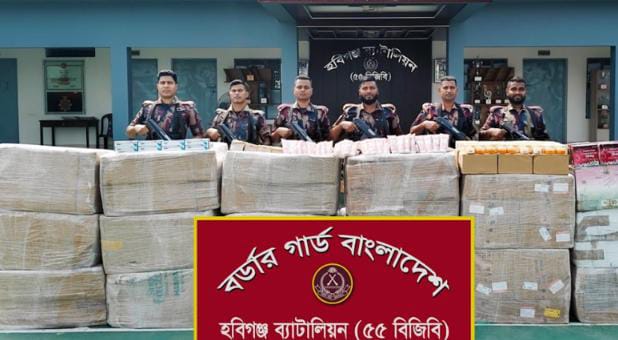 হবিগঞ্জে পাথরের নিচে লুকানো ২ কোটি ৪ লক্ষ টাকার ভারতীয় কসমেটিকস জব্দ