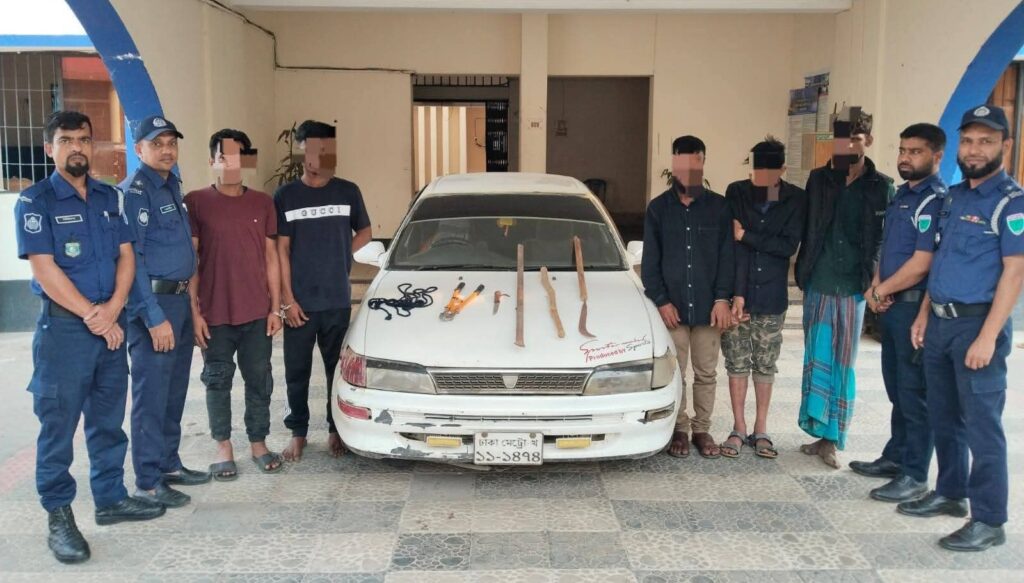 মৌলভীবাজার সদর উপজেলার আখানগীরী গ্রামে ডাকাতির প্রস্তুতিকালে একটি প্রাইভেটকার, দেশীয় অস্ত্র ও বিভিন্ন সরঞ্জামসহ ৫ জনকে গ্রেফতার করেছে সদর থানা পুলিশ।