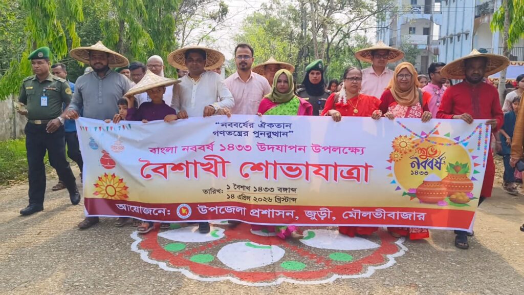 মৌলভীবাজারের জুড়ীতে বর্ণাঢ্য আয়োজনে এবং উৎসবমুখর পরিবেশে পহেলা বৈশাখ ও বাংলা নববর্ষ ১৪৩৩ উদযাপিত হয়েছে। মঙ্গলবার (১৪ এপ্রিল) উপজেলা প্রশাসনের উদ্যোগে উপজেলা পরিষদ প্রাঙ্গণে এই উৎসবের আয়োজন করা হয়। সকালে জাতীয় সংগীত এবং ‘এসো হে বৈশাখ’ গান পরিবেশনের মাধ্যমে বর্ষবরণ অনুষ্ঠানের শুভ উদ্বোধন করেন মৌলভীবাজার জেলা প্রশাসক তৌহিদুজ্জামান পাভেল। উদ্বোধন শেষে জুড়ী উপজেলা নিবার্হী কর্মকর্তা মুশফিকীন নুর এর নেতৃত্বে একটি বর্ণাঢ্য বৈশাখী শোভাযাত্রা বের করা হয়। শোভাযাত্রাটি শহরের প্রধান প্রধান সড়ক প্রদক্ষিণ করে।