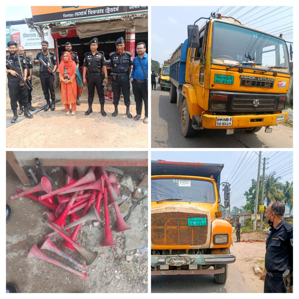 ‎সিলেটে র‍্যাব ও পরিবেশ অধিদপ্তরের যৌথ অভিযান: ১৪ গাড়িকে জরিমানা ও হাইড্রোলিক হর্ন জব্দ‎