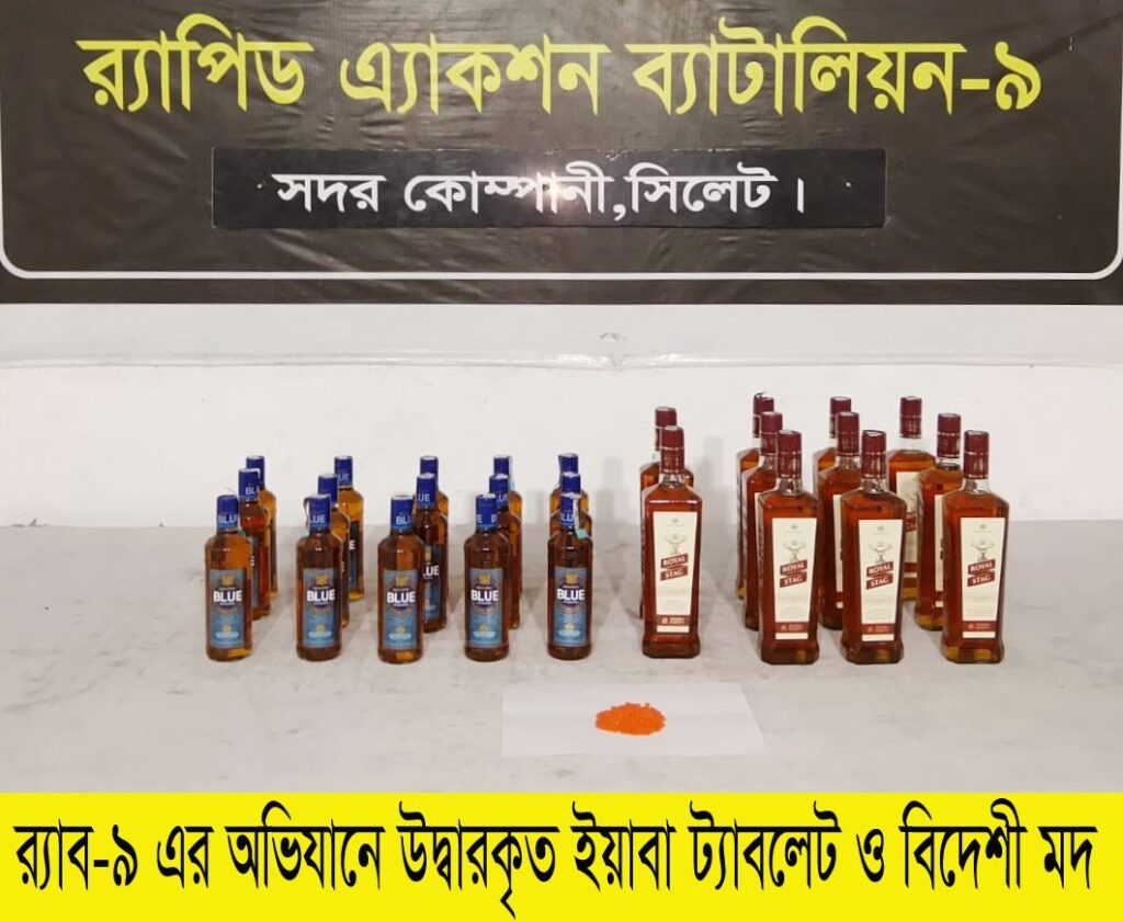 র্যাব সূত্রে জানা যায়,গত ১৬ এপ্রিল আনুমানিক রাত ৯টার দিকে গোপন সংবাদের ভিত্তিতে র্যাব-৯, সদর কোম্পানী সিলেটের একটি আভিযানিক দল জানতে পারে যে, শিকার খাঁ গ্রামের জনৈক কামালের বাড়িতে মাদক কেনাবেচা চলছে। সংবাদ পেয়ে রাত ৯:০৫ মিনিটের দিকে র্যাব সেখানে পৌঁছালে এক ব্যক্তি পালানোর চেষ্টা করে। এসময় ধাওয়া করে তাকে আটক করা হয়। পরবর্তীতে তল্লাশি চালিয়ে আটককৃত ব্যক্তির হেফাজত থেকে, ১৫০ পিস ইয়াবা ট্যাবলেট (একটি কালো জিপার প্যাকেটে রক্ষিত) ২৭ বোতল বিদেশী মদ (দুইটি প্লাস্টিক বস্তায় রক্ষিত) উদ্ধার করা হয়। গ্রেফতারকৃত কামাল উদ্দিন (৩৫) জৈন্তাপুর থানার শিকার খাঁ গ্রামের মৃত আব্দুল মজিদের ছেলে। প্রাথমিক জিজ্ঞাসাবাদে সে জানায়, সীমান্ত এলাকা থেকে মাদক সংগ্রহ করে সে বিক্রির উদ্দেশ্যে নিজের কাছে রেখেছিল।