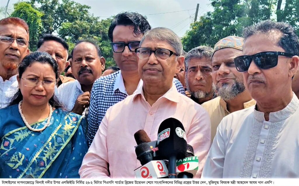 ‎শনিবার (১৮ এপ্রিল) দুপুরে টাঙ্গাইলের বাসাইল উপজেলার দাপনাজোড়ে ঝিনাই (পুংলি) নদীর উপর এলজিইডি নির্মিত ২৮২ মিটার পিএসসি গার্ডার ব্রিজের উদ্বোধন শেষে সাংবাদিকদের বিভিন্ন প্রশ্নের জবাবে তিনি এসব কথা বলেন। উদ্বোধন শেষে মন্ত্রী দৃষ্টিনন্দন সেতুটি ঘুরে ঘুরে দেখেন এবং স্থানীয় গণমানুষের সঙ্গে কথা বলেন।