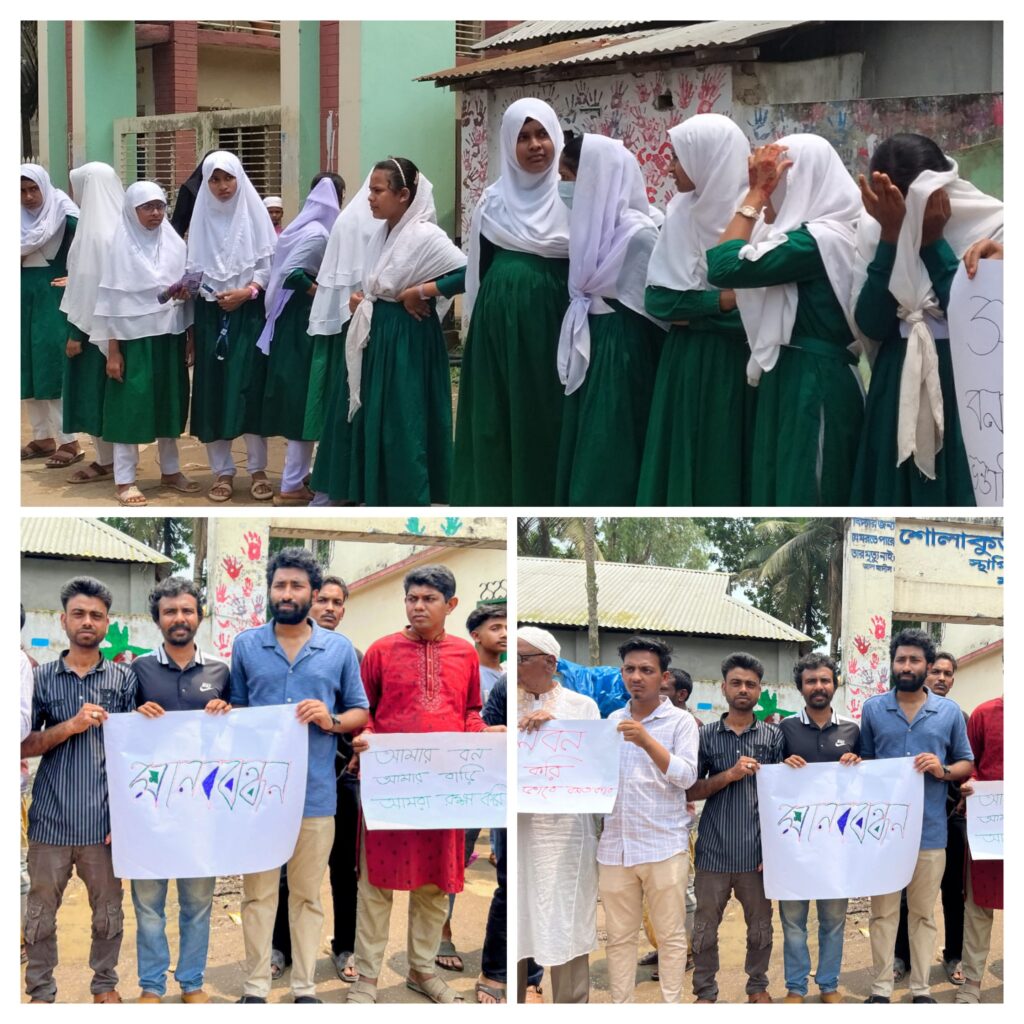 রবিবার সকাল ১১টায় শোলাকুড়ী উচ্চ বিদ্যালয় গেটের সামনে এই মানববন্ধন কর্মসূচি পালিত হয়। সাংবাদিক হাসনাত জোবায়ের পরিবেশকর্মী রেজাউল করিম রাতুলের সমন্বয়ে আয়োজিত এই কর্মসূচিতে একাত্মতা প্রকাশ করেন শিক্ষক, শিক্ষার্থী ও সাধারণ মানুষ।