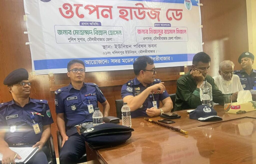 ‎মৌলভীবাজার সদর উপজেলার ১নং খলিলপুর ইউনিয়ন ও ২নং মনুমূখ ইউনিয়নে ওপেন হাউজ ডে অনুষ্ঠিত হয়েছে। রবিবার (১৯ এপ্রিল) মৌলভীবাজার মডেল থানার আয়োজনে ইউনিয়ন পরিষদ কার্যালয়ে এ সভা অনুষ্ঠিত হয়।
