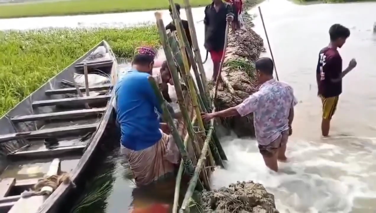 হবিগঞ্জে হাওড়ের বাঁধ ভেঙে বিপর্যয়ের শঙ্কা: পানিতে তলিয়ে যাচ্ছে বোরো ধান, ৩০০ একর প্লাবিত