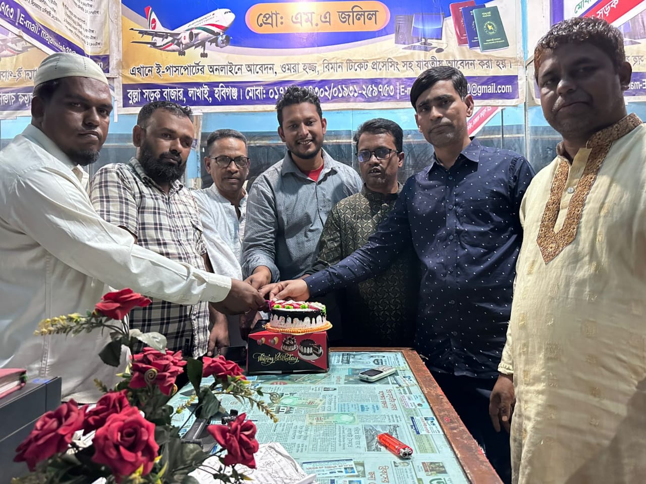 লাখাই প্রেস ক্লাব সভাপতির ৫৪তম জন্মদিন উদযাপন: বুল্লা বাজারে সাংবাদিকদের সাথে কেক কাটা